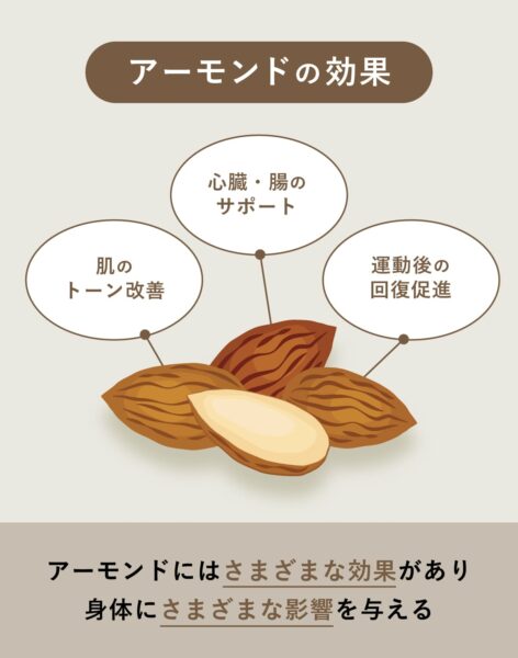 | 効果 | アーモンドの抗酸化作用、カカオポリフェノールによる血流改善 |