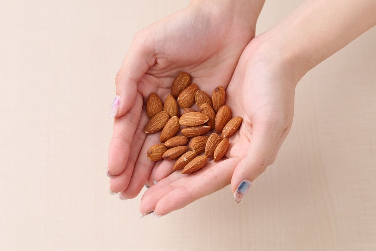 アーモンドには葉酸が含まれており、妊娠期の栄養補給に適しています。1日20粒程度を目安に摂取しましょう。