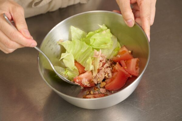 ③オリーブオイルで和え、塩こしょうで味を調える |