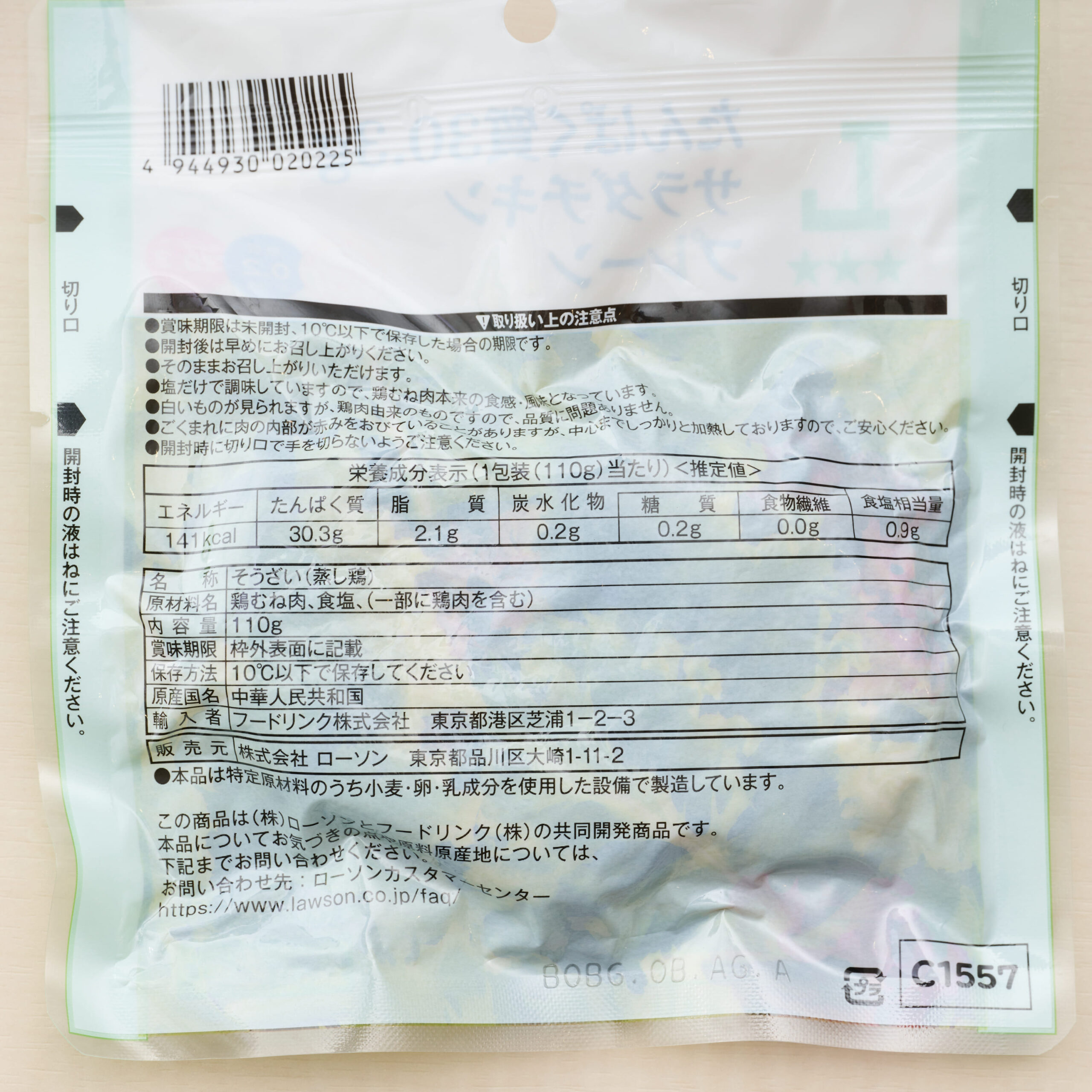 ローソン 【商品名】たんぱく質30.3g サラダチキン プレーン 【価格】279円 【糖質・カロリー】糖質:0.2g / カロリー:141kcal |