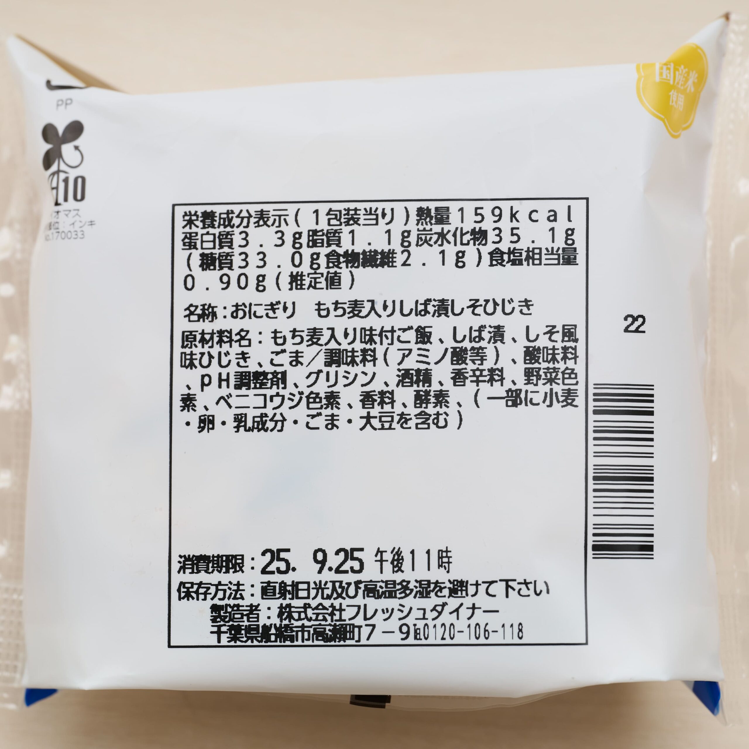 商品名 | しば漬けしそひじきおにぎり(国産もち麦入り) |