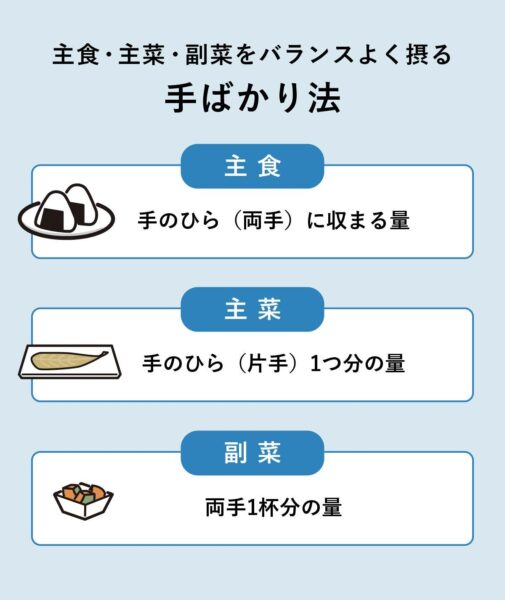 食事では、主食・主菜・副菜を揃えることが基本とされる。