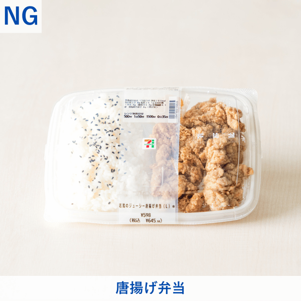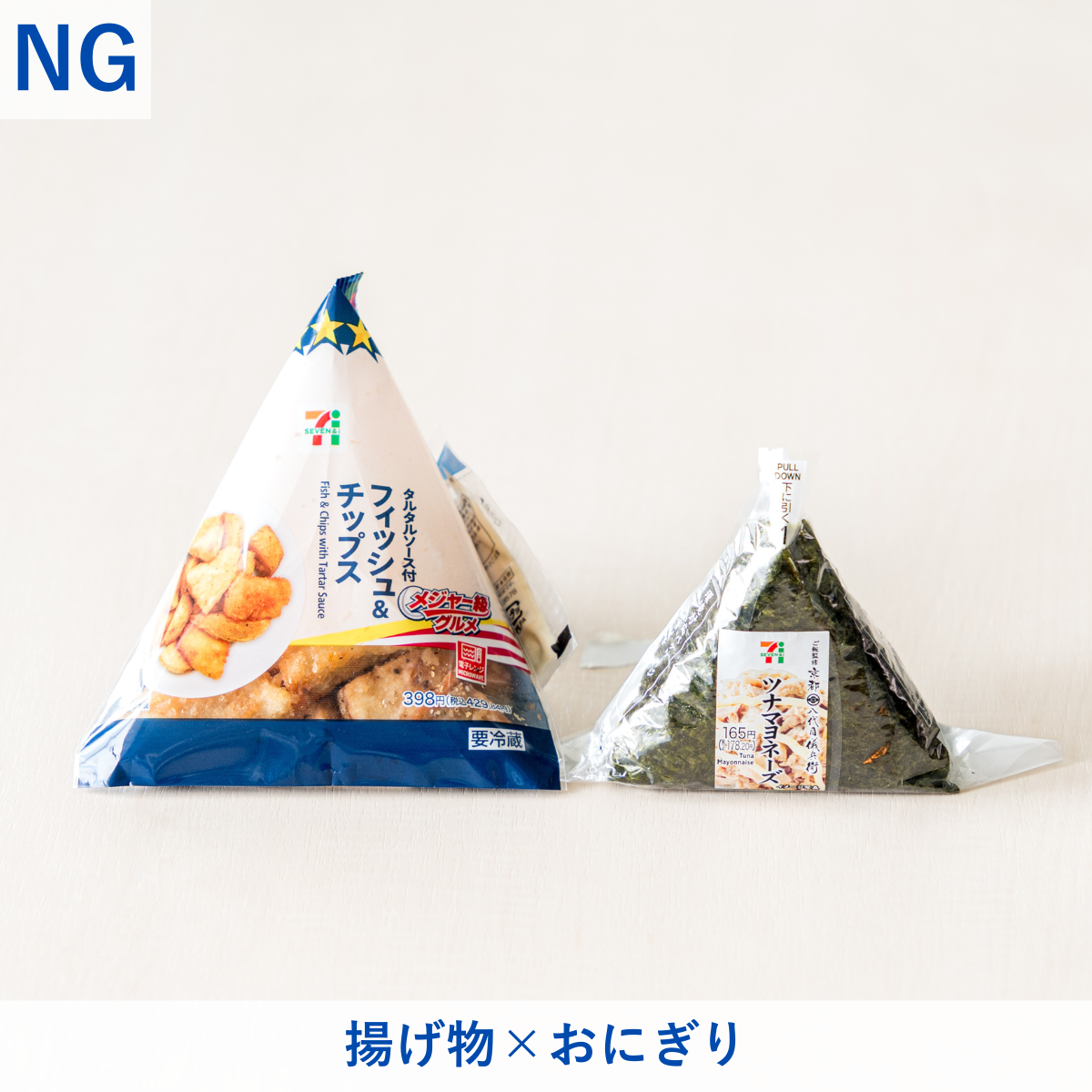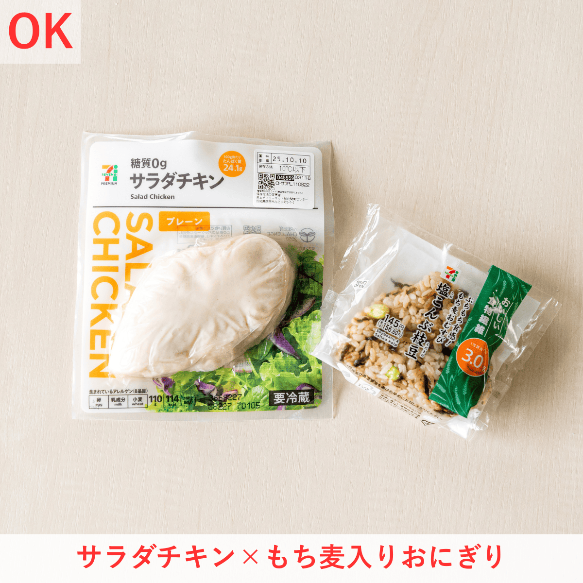揚げ物とおにぎりの組み合わせは食べ応えがある反面、高脂質・高カロリーで血糖値も上がりやすいため、ダイエット中は気をつけたい組み合わせです。代わりに、サラダチキンと大麦入りのおにぎりを選ぶと、タンパク質と食物繊維を同時にとることができ、満腹感が持続しやすくなります。こうした工夫により栄養バランスが整いやすくなり、間食を防ぎつつ代謝の維持にもつながります。