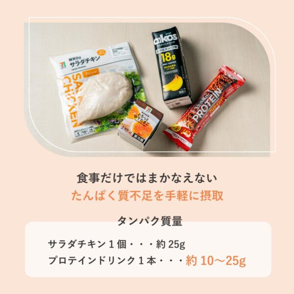コンビニで買えるプロテインは、この不足を手軽に補う手段として非常に有効。