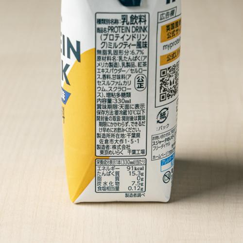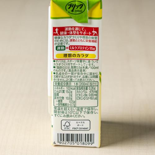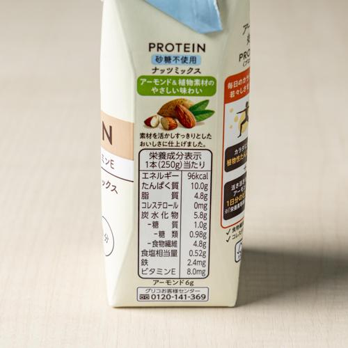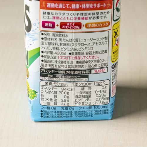 カルシウム、ナイアシン、ビタミンB群、葉酸も配合され、軽めのプロテイン補給としても使いやすい。トレーニングの合間、ちょっと小腹がすいたとき、補助的なタンパク質補給をしたいシーンにぴったりの一本。