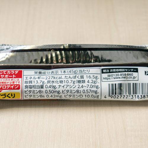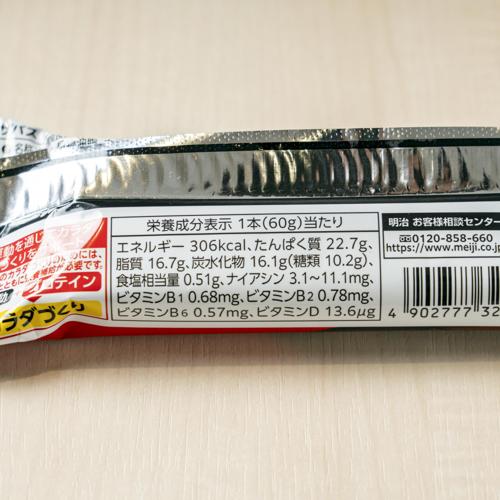 隙間時間の栄養補給として最適。5gという量は筋肥大目的には少ないものの、ナイアシンやビタミンB群を配合しているため、エネルギー代謝をサポートする役割も。夏場のお弁当に添えて、タンパク質を補うとよさそうです。