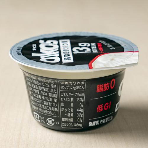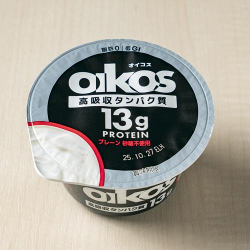 ヨーグルトタイプ(オイコスなど)は1個あたり約10gのタンパク質を含み、朝食や間食代わりに利用されるケースが多い。乳タンパクを主体としており、吸収効率も良い。さらに乳酸菌を同時に摂取できるため、腸内環境の改善や消化サポートの観点でもおすすめ。