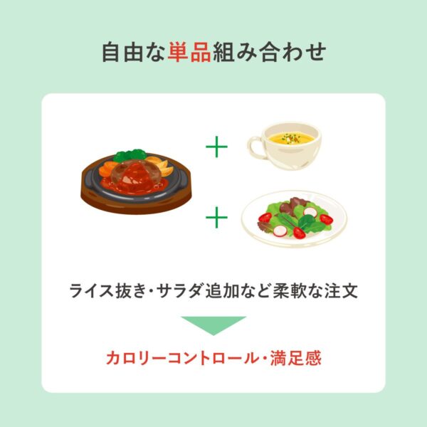 外食であっても自分で食事を設計できるという点は、ダイエットを継続するうえで非常に大切。その日の活動量や目的に合わせて、主食・主菜・副菜のバランスをとることで、1日の栄養バランスを整えやすくなります。