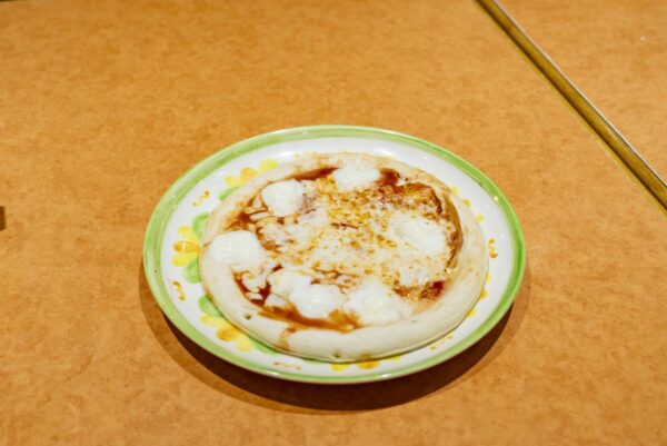 | 800円台 | バッファローモッツァレラのマルゲリータピザ(1/2シェア)+小エビサラダ | 約590kcal | シェアして食べれば600kcal以内におさまり、チーズの満足感も得られる。 |