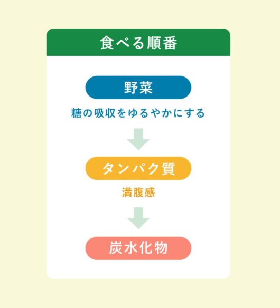 野菜→タンパク質→炭水化物の順番で食べる