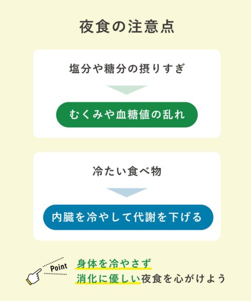 - 夕食は寝る3時間前までに済ませる