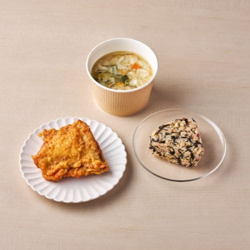 【満足度高め】ケンタッキー1ピース×野菜スープ×雑穀系のおにぎり