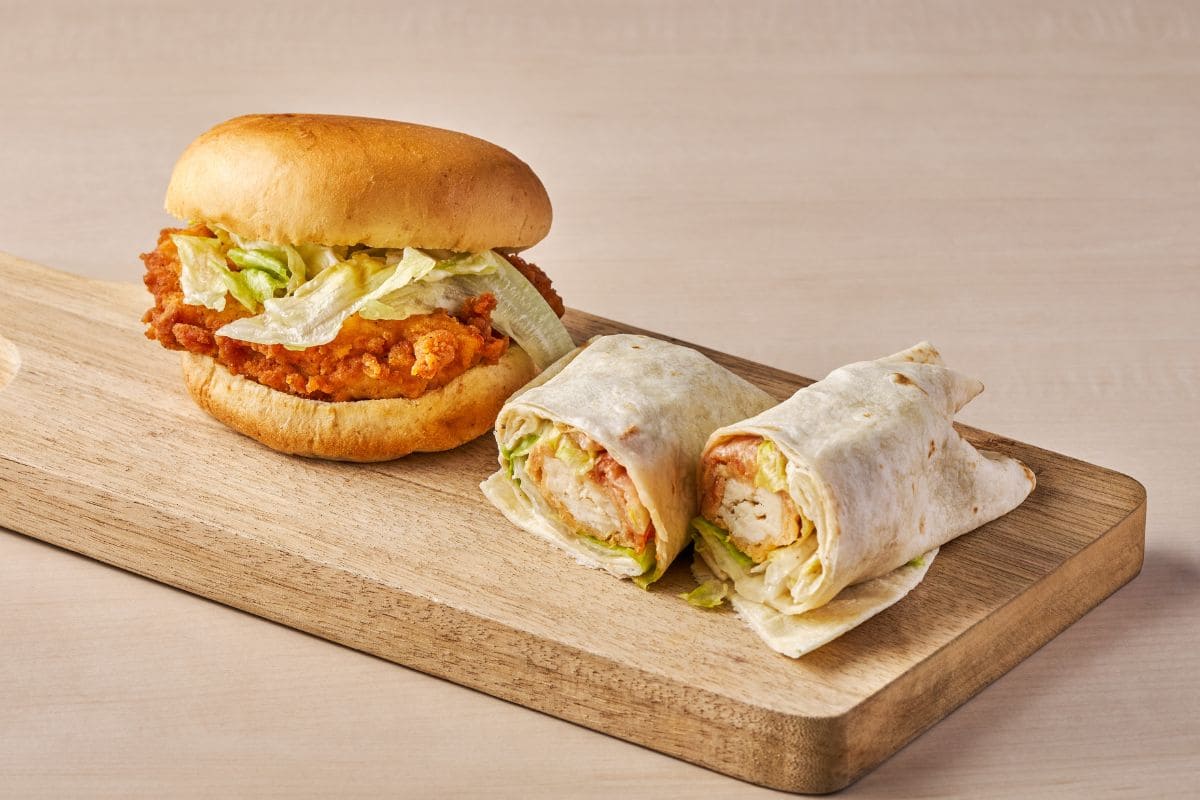 【バーガー系はできるだけカロリーが低いものを】 バーガー系はどうしてもカロリーが高くなってしまうので、400kcal以下のチキンフィレバーガーと、300kcal程度のペッパーマヨツイスターをチョイス。食べるときの注意点と合わせて紹介。 |