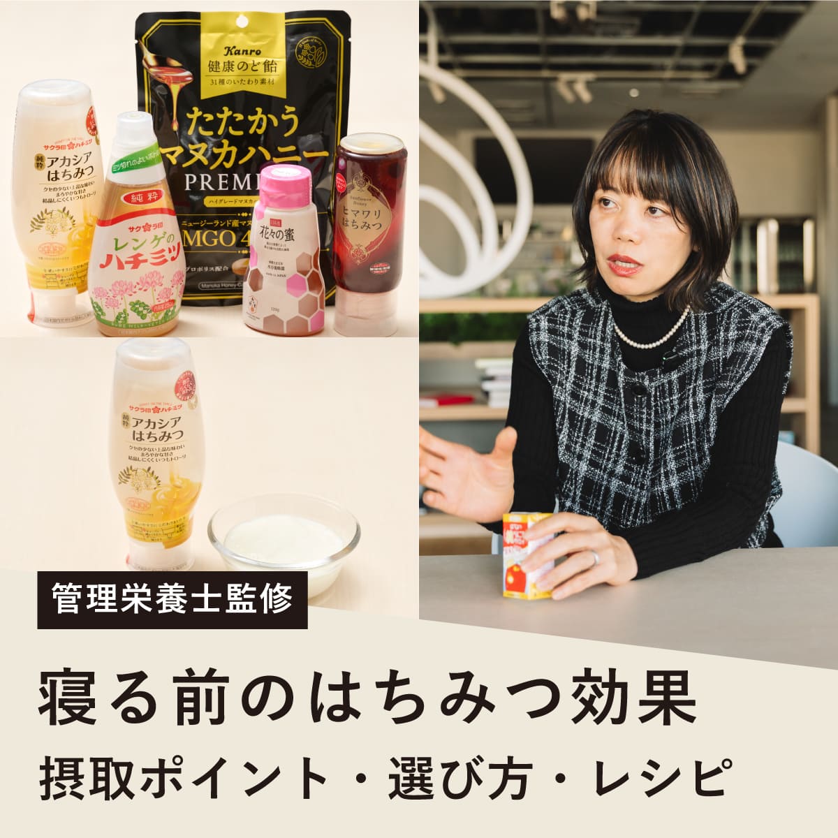 さらに、はちみつはトリプトファンという成分を含んでおり、セロトニンやメラトニンの生成を促進し、より良い眠りをサポートする。