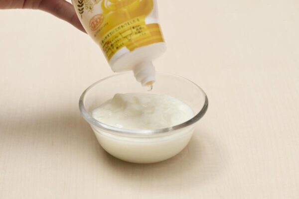 【材料】(2~3人前) ・プレーンヨーグルト:100g ・はちみつ:大さじ1杯 |