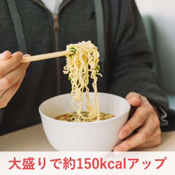 ラーメンを大盛りにすると、麺量が増える分だけカロリーが上昇する。