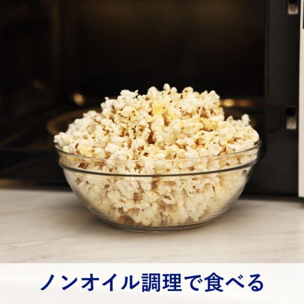 手作りは調理工程を自分で管理できるため、カロリーと味付けのコントロールがしやすい。耐熱容器にポップコーン用の乾燥コーンを入れ、フタをして電子レンジ加熱すればノンオイル調理が可能。