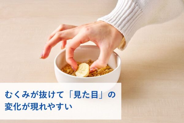 その結果、ウエストや顔まわりがすっきりし「なんとなく軽い」「少し痩せたかも」と感じやすい傾向にある。