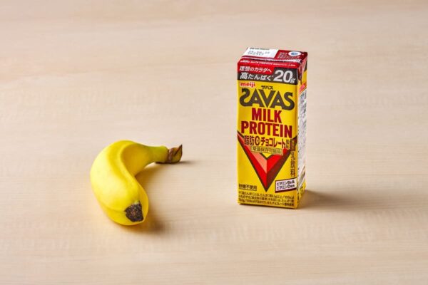 手軽なのは、プロテインを水や牛乳で溶かし、バナナと一緒に摂る方法。プロテインで朝食で不足しがちなたんぱく質を補うことで、栄養バランスが安定しやすくなる。