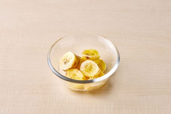 ①バナナは縦半分または輪切りにする。 |