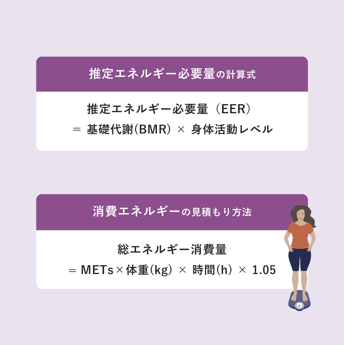 厚生労働省の「日本人の食事摂取基準(2025年版)」でも、個人の1日推定エネルギー必要量の目安を考える時に、年齢別の基礎代謝基準値×体重(=基礎代謝量の見積もり)×身体活動レベルで考える方法が使われている。