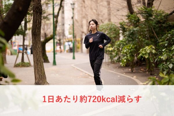 1ヵ月で3kg減らすには、約21,600kcalのカロリー赤字が必要。1日あたりにすると、約720kcalを減らす計算となる。