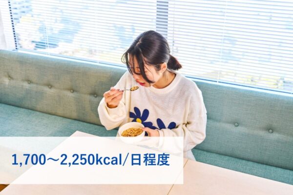 目安は身体活動量によって1,700~2,250kcal/日程度ほどだが、身長や体重、運動習慣によって調整が必要になる。