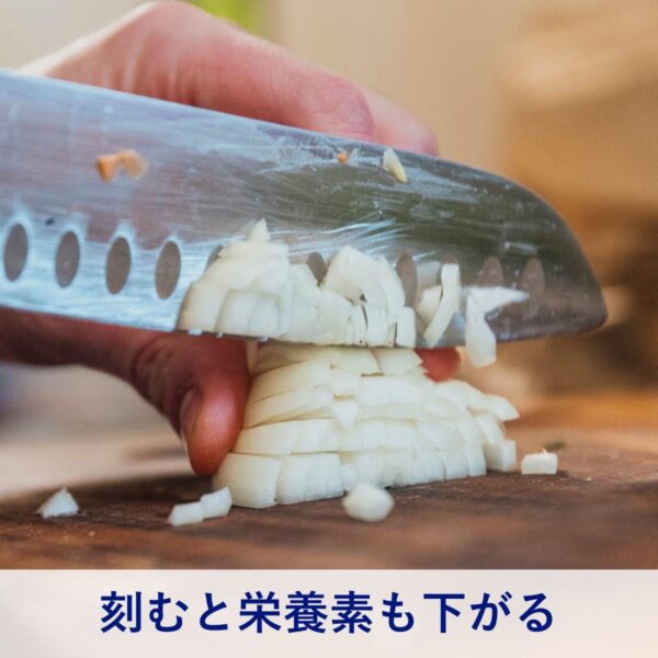 みじん切りにして長く放置する、刻んでから洗うといった習慣も栄養価を下げる原因になる。調理の直前に切る、用途に合わせて必要以上に細かくしないだけでも、栄養素はキープしやすい。