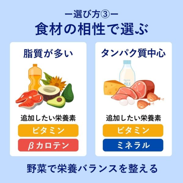 - 他食材との相性で選ぶ(栄養素の補完)
