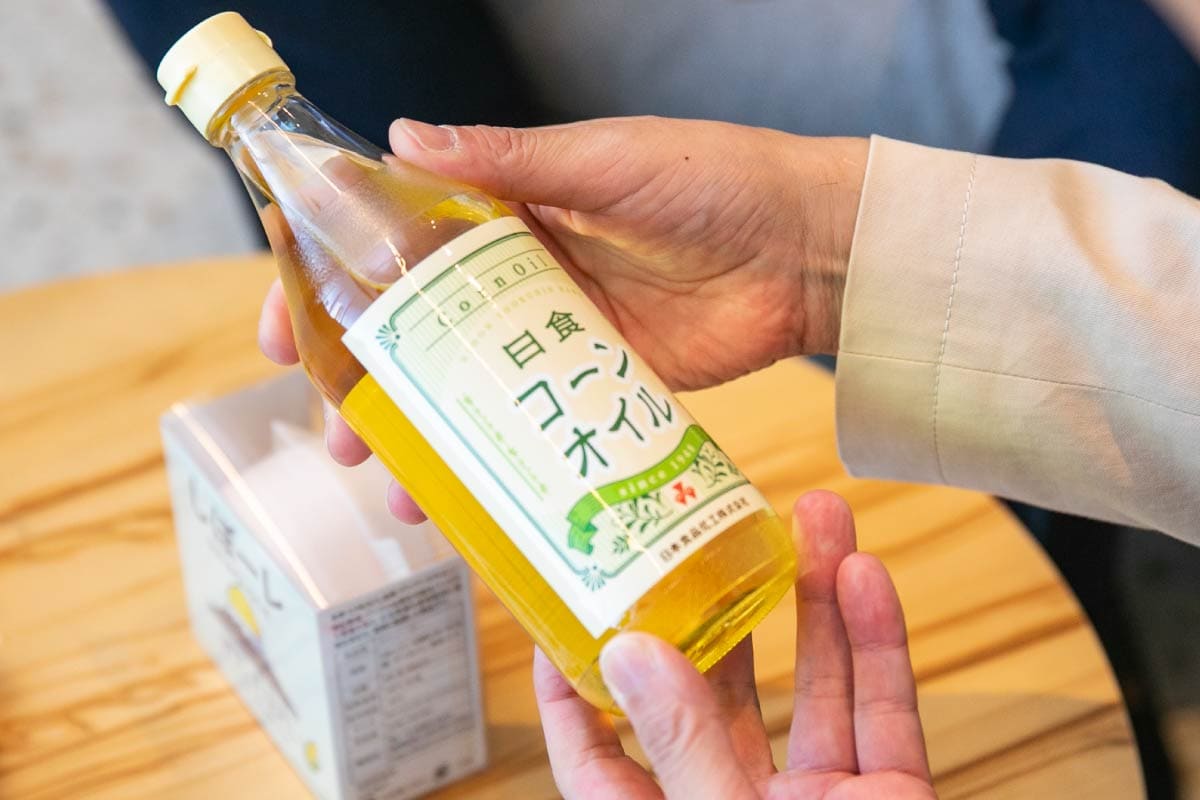 荒川:その点は大きかったですね。そこで、社販用に瓶詰めのコーンオイルを作り、ラベルに会社名を明記して、まずは社員自身に「これが自分たちのつくっているオイルだ」と実感してもらうようにしました。そうすると、家族にも「お父さん(お母さん)はこういうものをつくっているんだよ」と伝えやすくなる。誇りが生まれますし、企業としても地域の方々に認知されるきっかけになります。