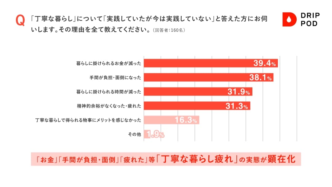 丁寧な暮らしに憧れを持つ一方で、丁寧な暮らしに疲れを感じ、途中で挫折してしまうケースも多い。