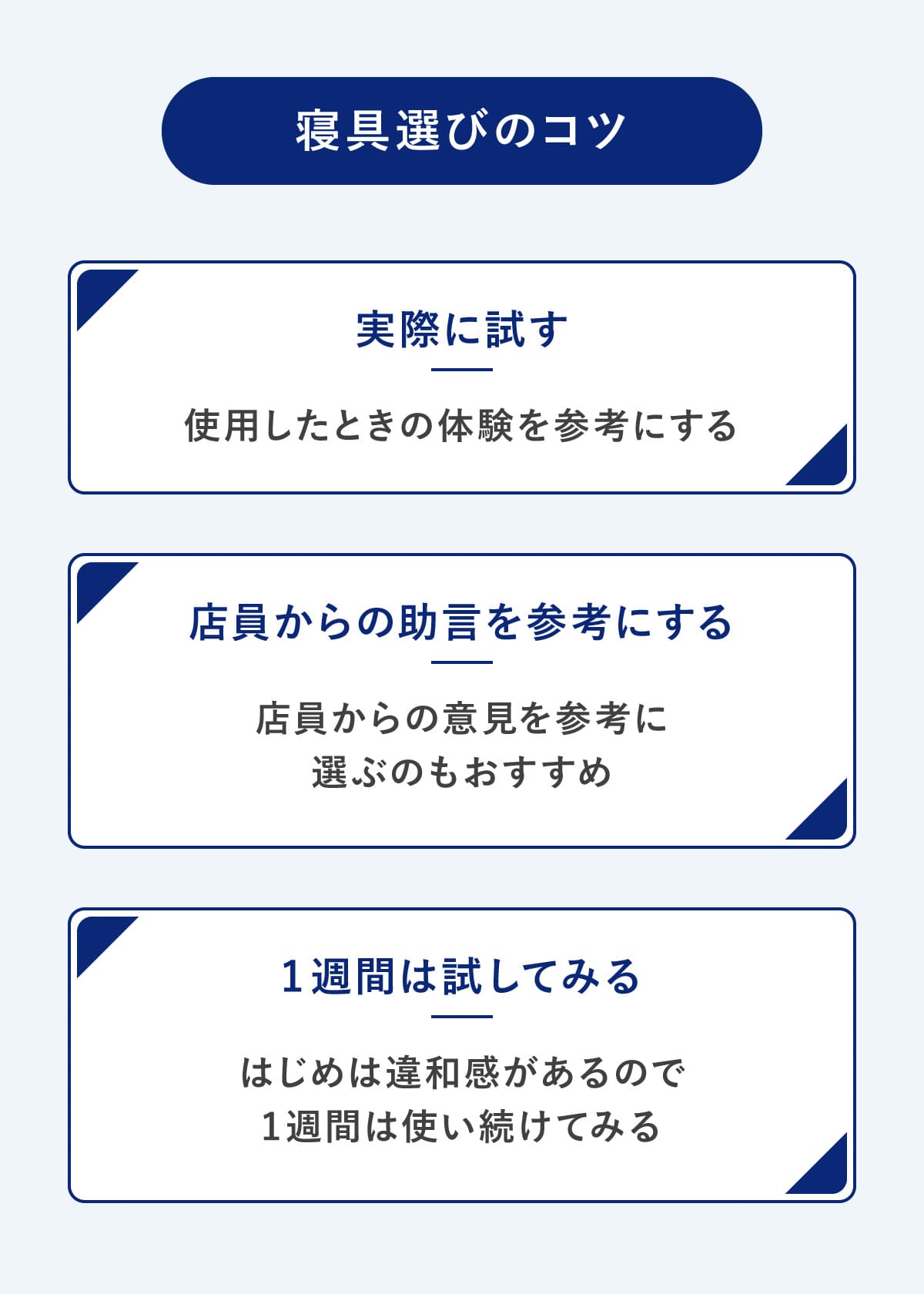 ── 自分に適した寝具を選ぶ時のコツはありますか?
