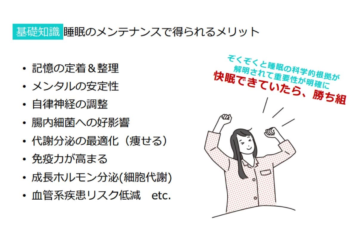 テーマは「睡眠をより良くする寝具について考えよう」。睡眠は、心身の健康はもちろん、働き方や人間関係にも影響を与える、ウェルビーイングの重要な基盤のひとつだ。