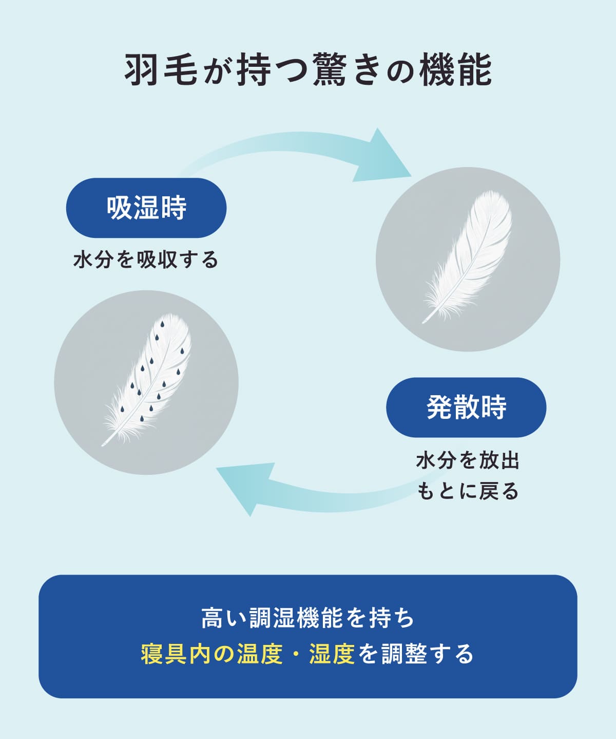── 羽毛ふとんの中は常に快適な温度と湿度に保たれるわけですね。
