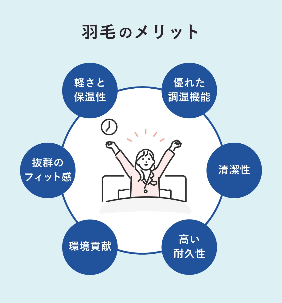 ── 保温性や湿度管理以外に、羽毛のメリットはありますか?