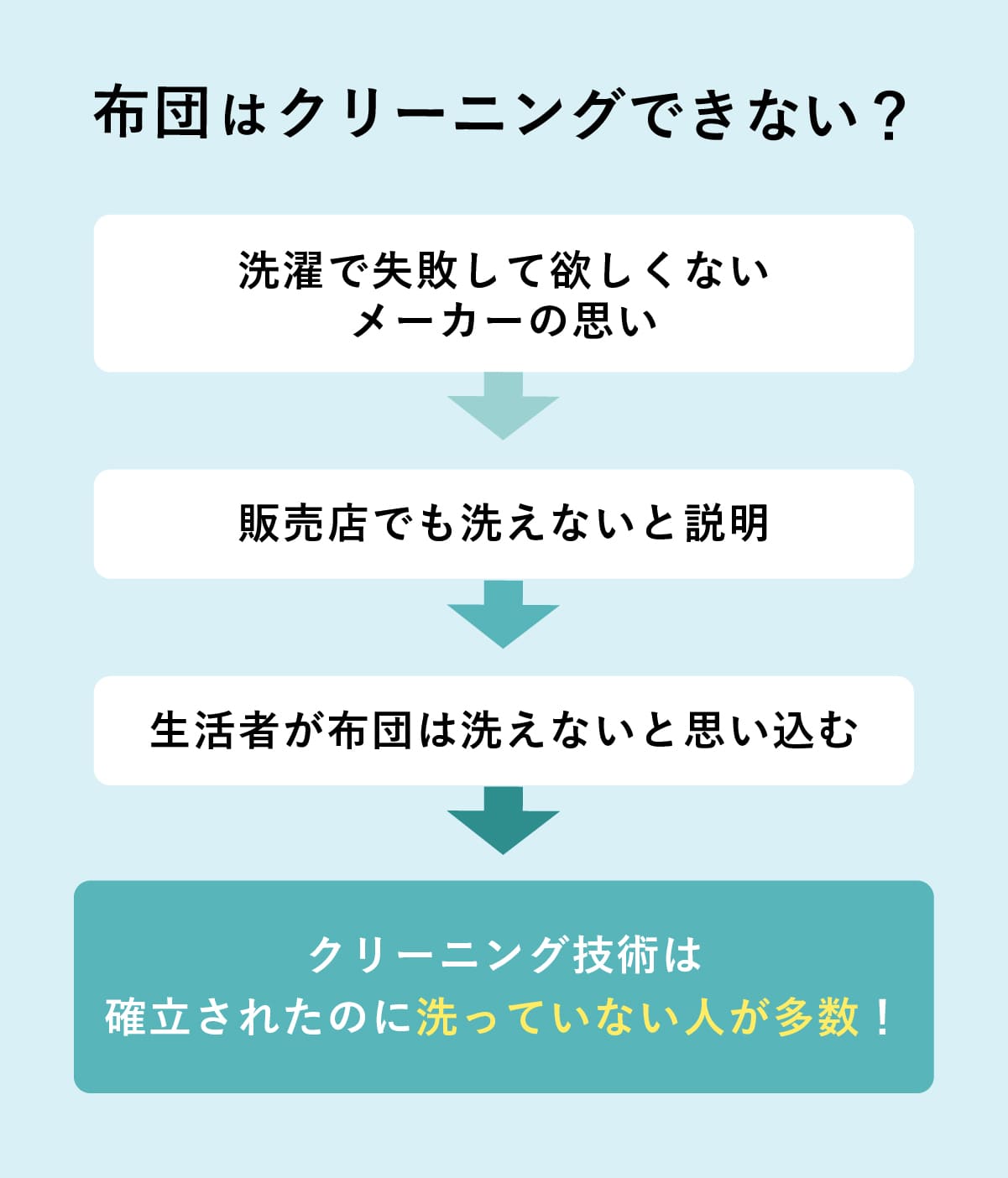 ── そうなんですね!驚きました。なぜ、ふとんは丸洗いできないという感覚を持つ人が多いのでしょうか?