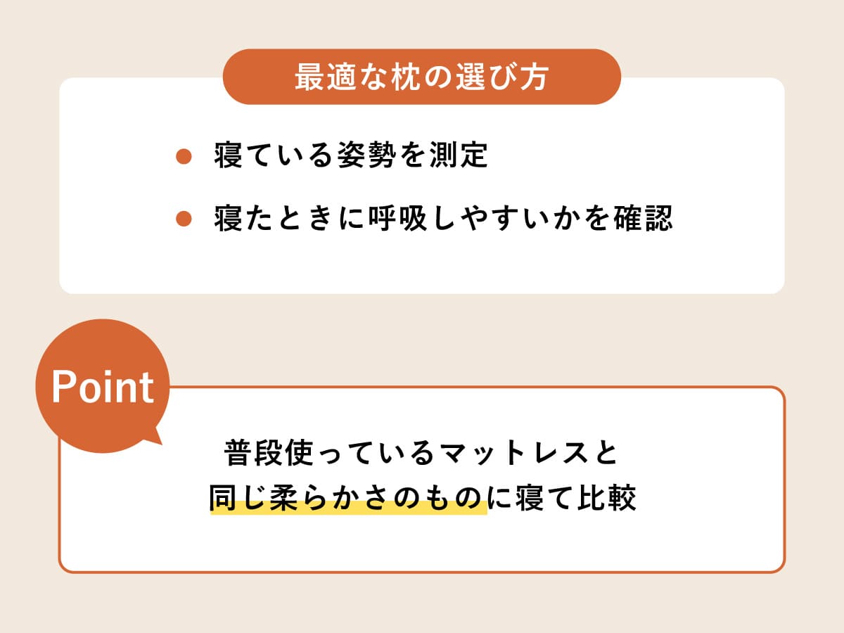 枕を使って寝てみて、立っているときと同じように呼吸できているかを確認すると、枕の高さがあっているのかがわかると思います。