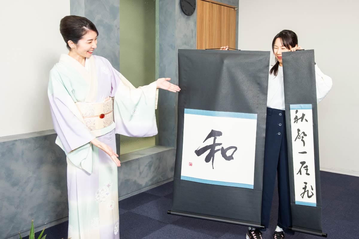 前野:この優しい肌触りがたまりません。掛け軸への活用は、斬新で素晴らしい着想ですね。