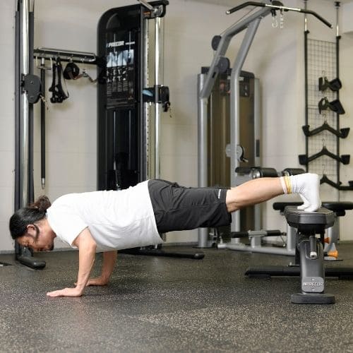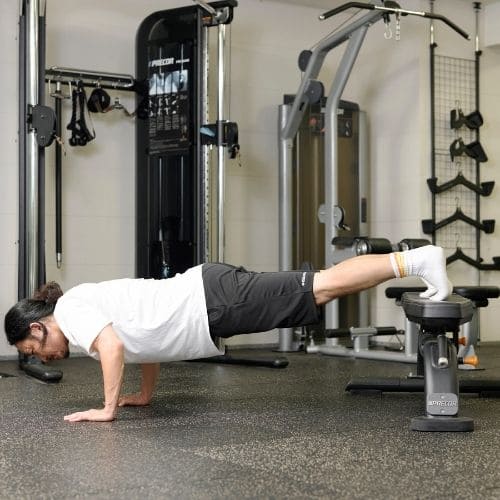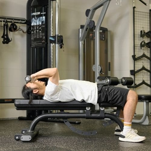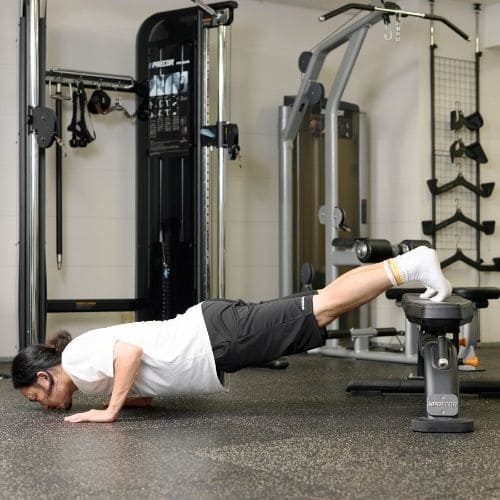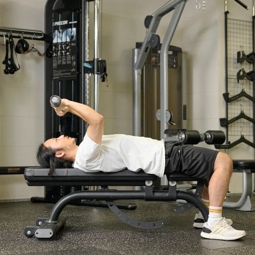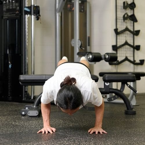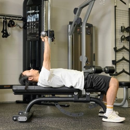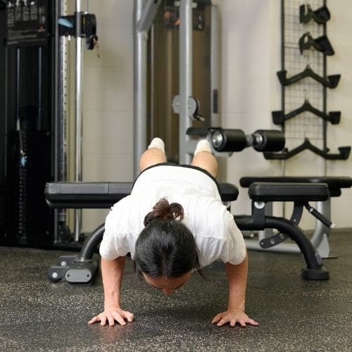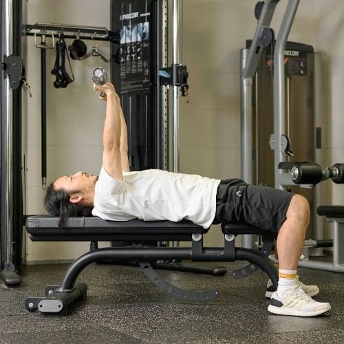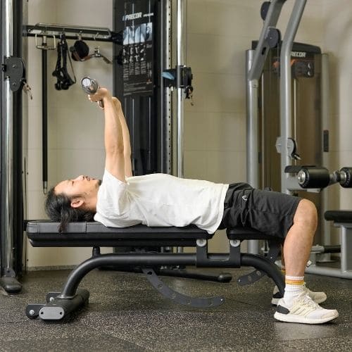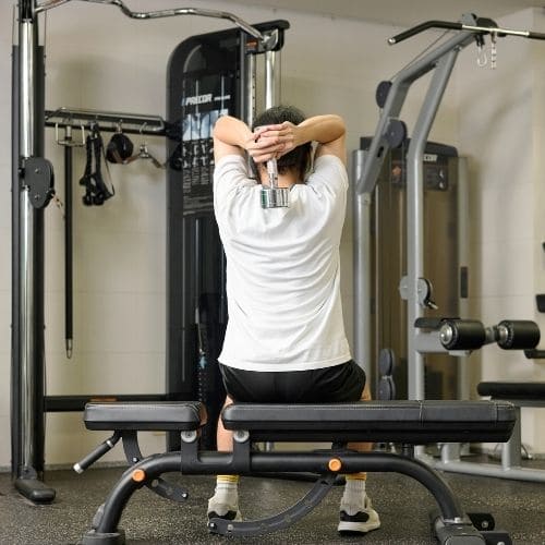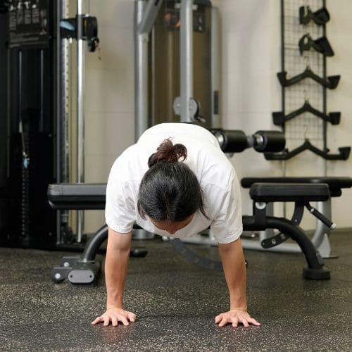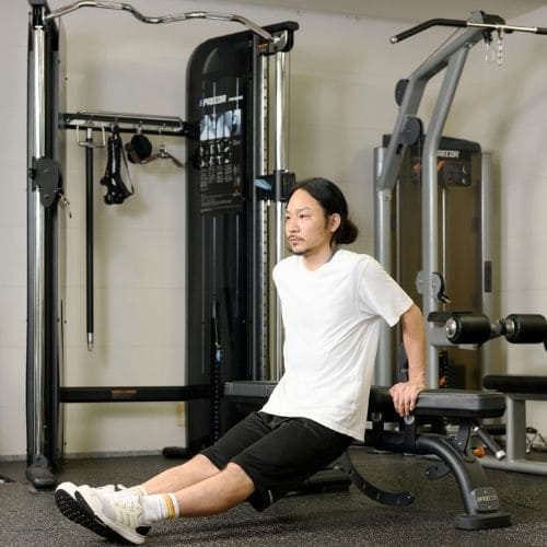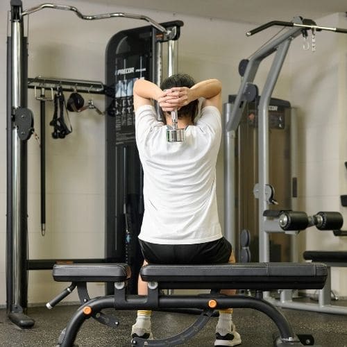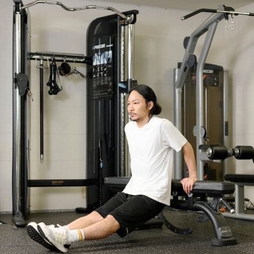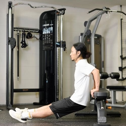 リバースプッシュアップやナロープッシュアップなどの自重種目でも、動作をゆっくりする・足をあげて負荷を上げるなどの工夫をすれば多少の筋肥大効果は期待できます。しかし、トレーニング効率を考えると、自重種目より器具をつかった種目の方がおすすめです。