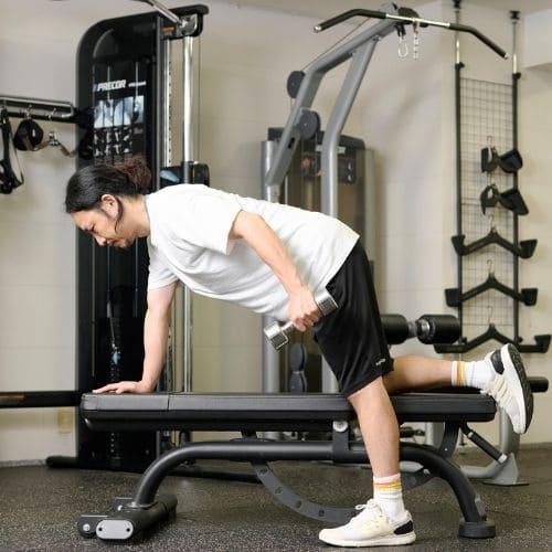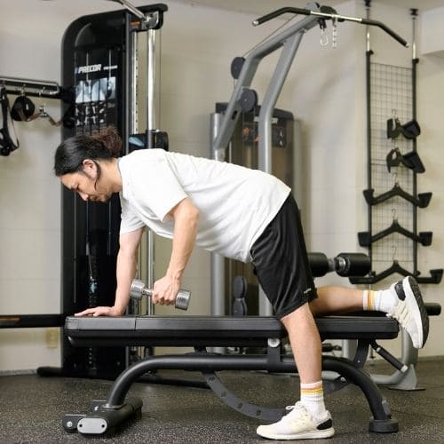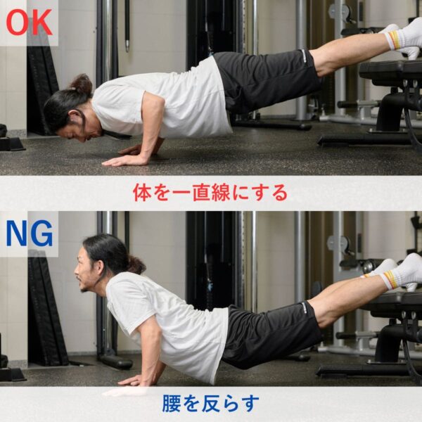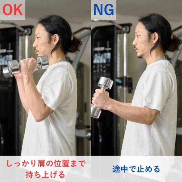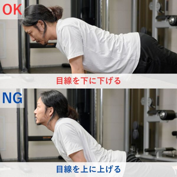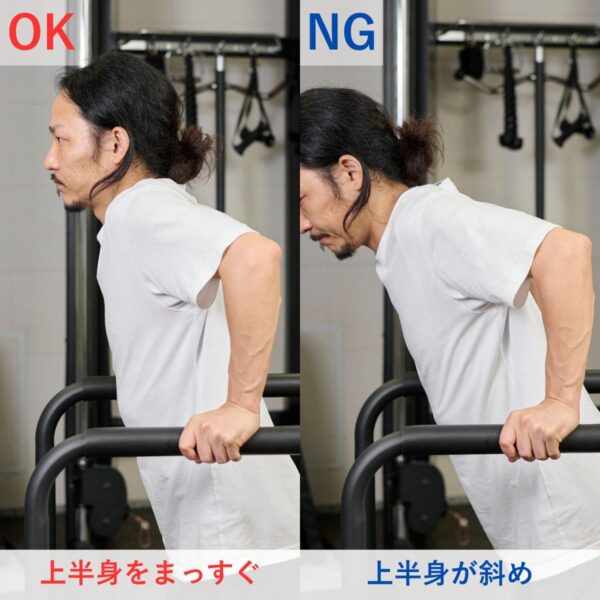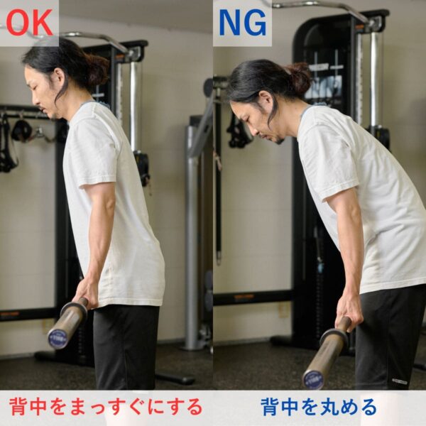 - 高重量だとフォームが崩れやすくケガにつながるので注意