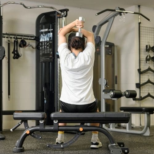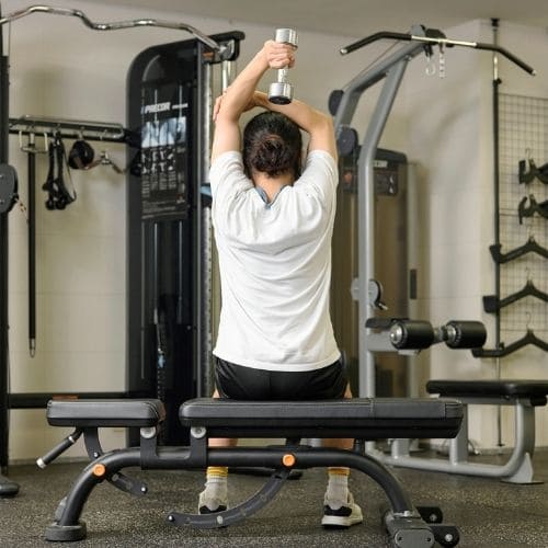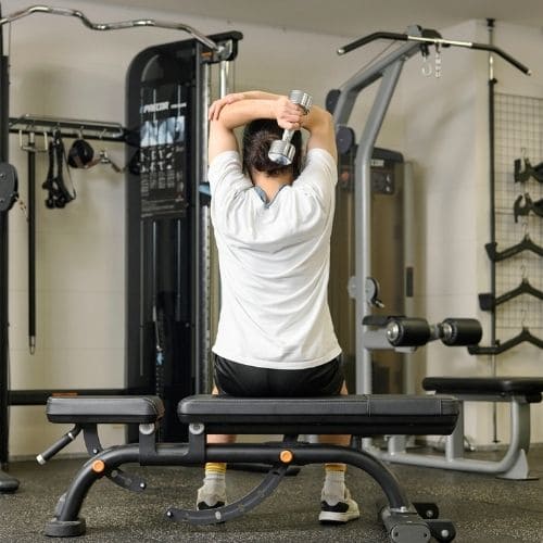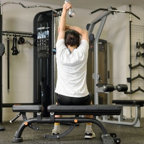 女性の場合は、男性のように上腕二頭筋や上腕三頭筋が大きく肥大することはほとんどありません。引き締めを目的とするのであれば、キックバックやプレスダウンなどの種目がおすすめです。