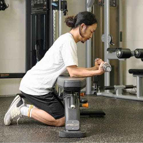 腕をパッドにしっかり乗せると、上腕二頭筋だけに効きが集中しやすかったです。シートが低いと肩がすくみやすかったです。