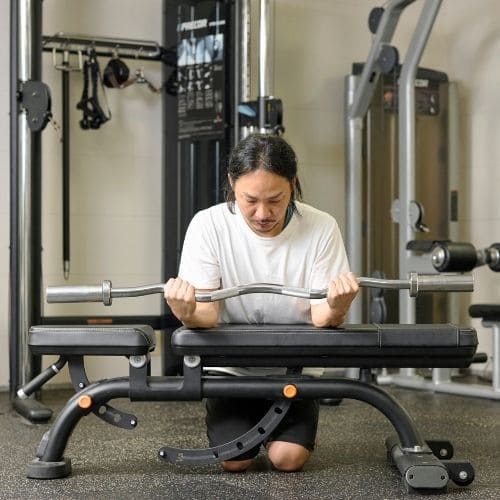 - 前腕をベンチにのせバーベルを握る