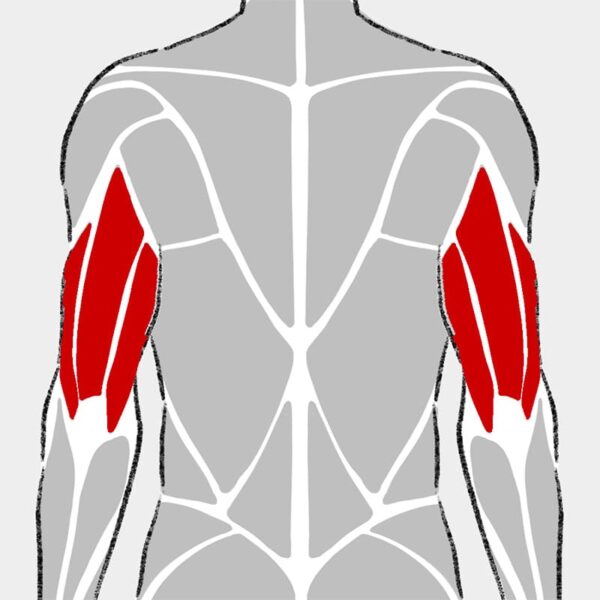 主な役割 | 腕の筋肉の中で最も体積が大きく、腕の太さを出すうえで最重要。押す動作や腕を後ろへ引く動作で強く使われる。 |