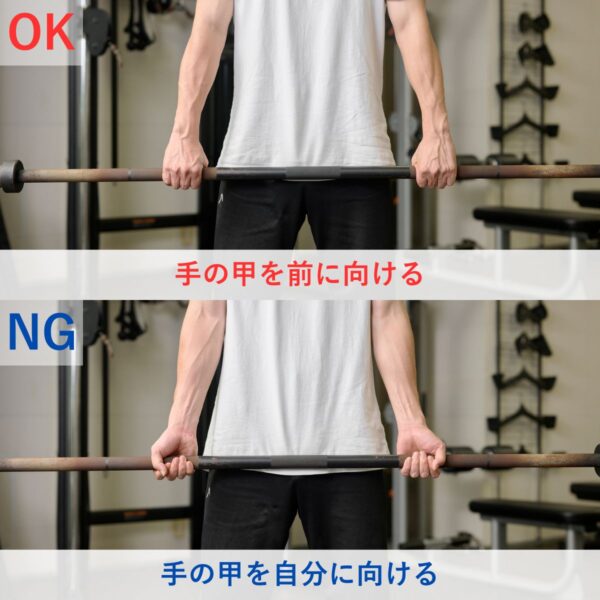 - 手首を曲げてバーベルを持ち上げる