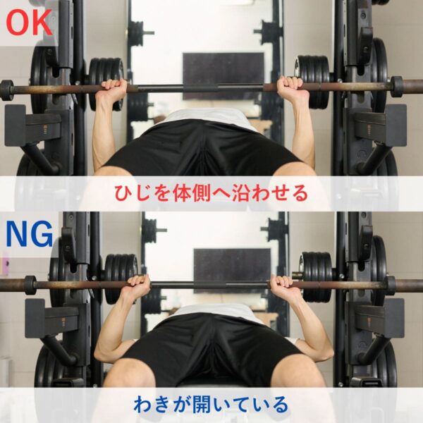 バーを下ろす際に、ひじを後ろに引かない