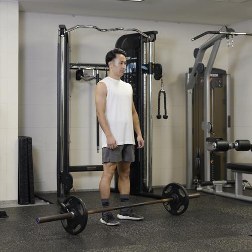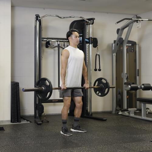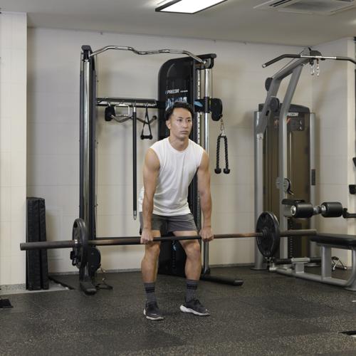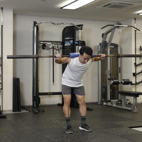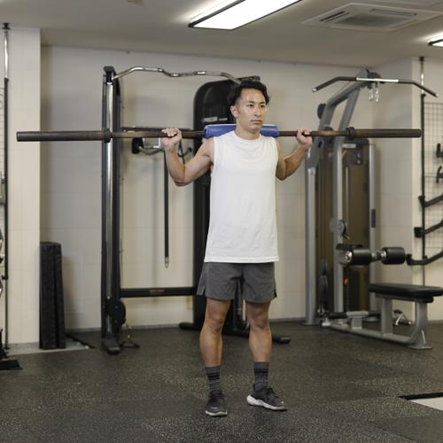 - バーベルを肩に担ぐ