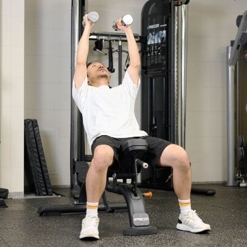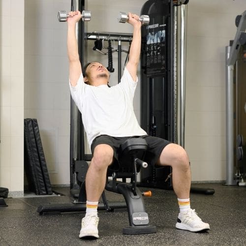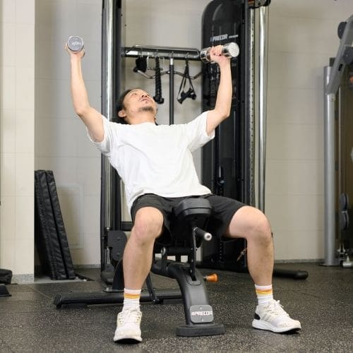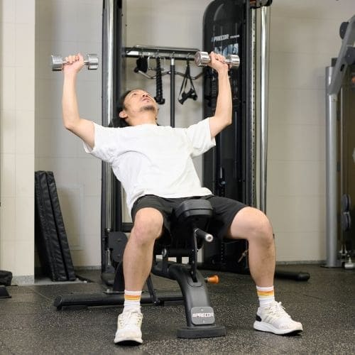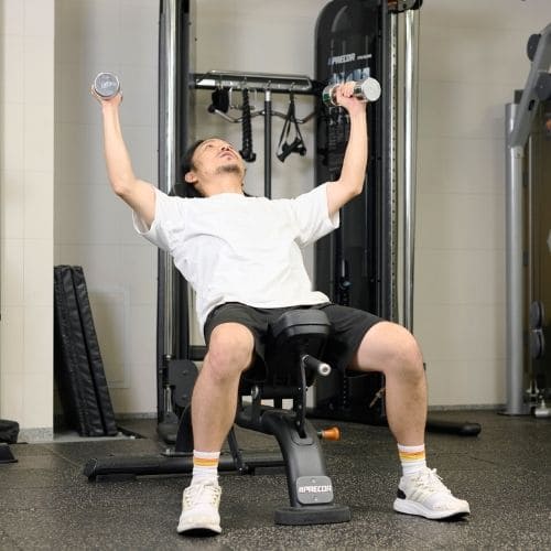 重い重量に挑戦したときは、どうしても反動で押してしまい、上部ではなく肩や腕が先に疲れてしまいました。逆に軽すぎると「効いている感じ」がなく、続けても効果に疑問を感じることがありました。