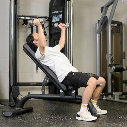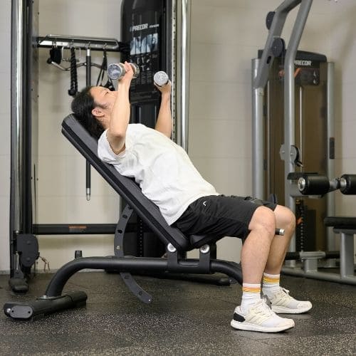 重量が重すぎるとフォームが崩れ、反動を使った動作になりやすい。逆に軽すぎると筋肉への刺激が不足し、成長が停滞する。大胸筋上部を狙うなら、8〜12回をギリギリこなせる重量が理想的。