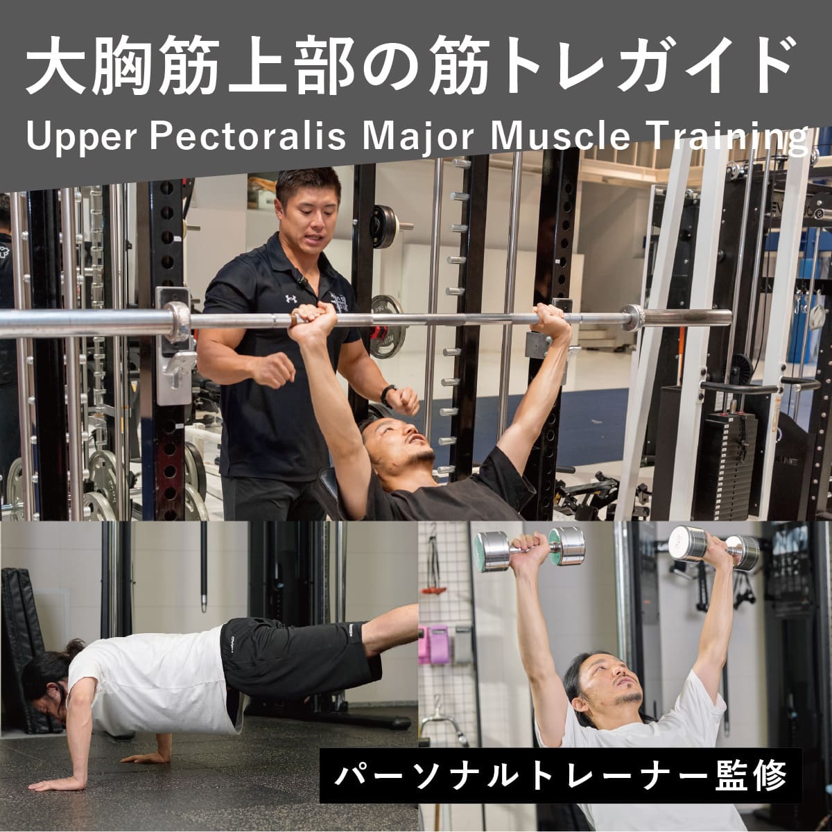 胸のトレーニングといえばベンチプレスや腕立て伏せなど、フラットポジションの種目を中心におこなっている人が多い。上部に特化して発達させるには、インクラインベンチプレスやインクラインダンベルプレスといった、角度をつけた種目を取り入れる必要がある。